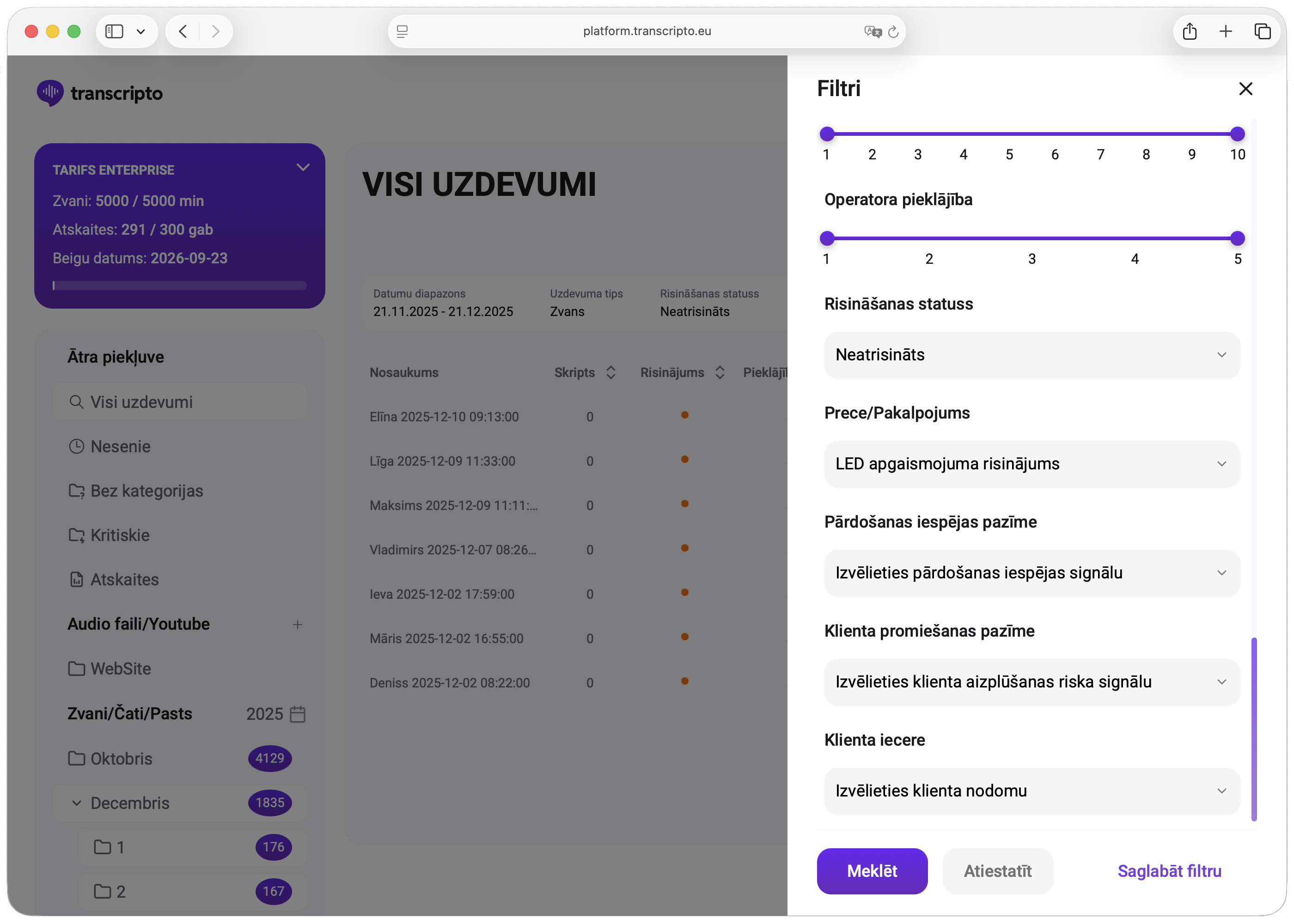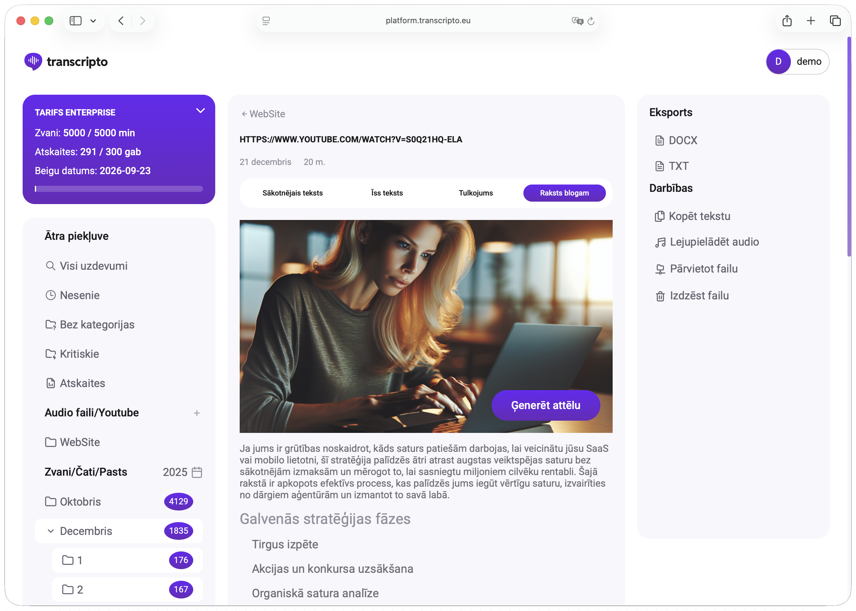 - Piekļuve caur transcripto.eu — nav nepieciešama instalācija.